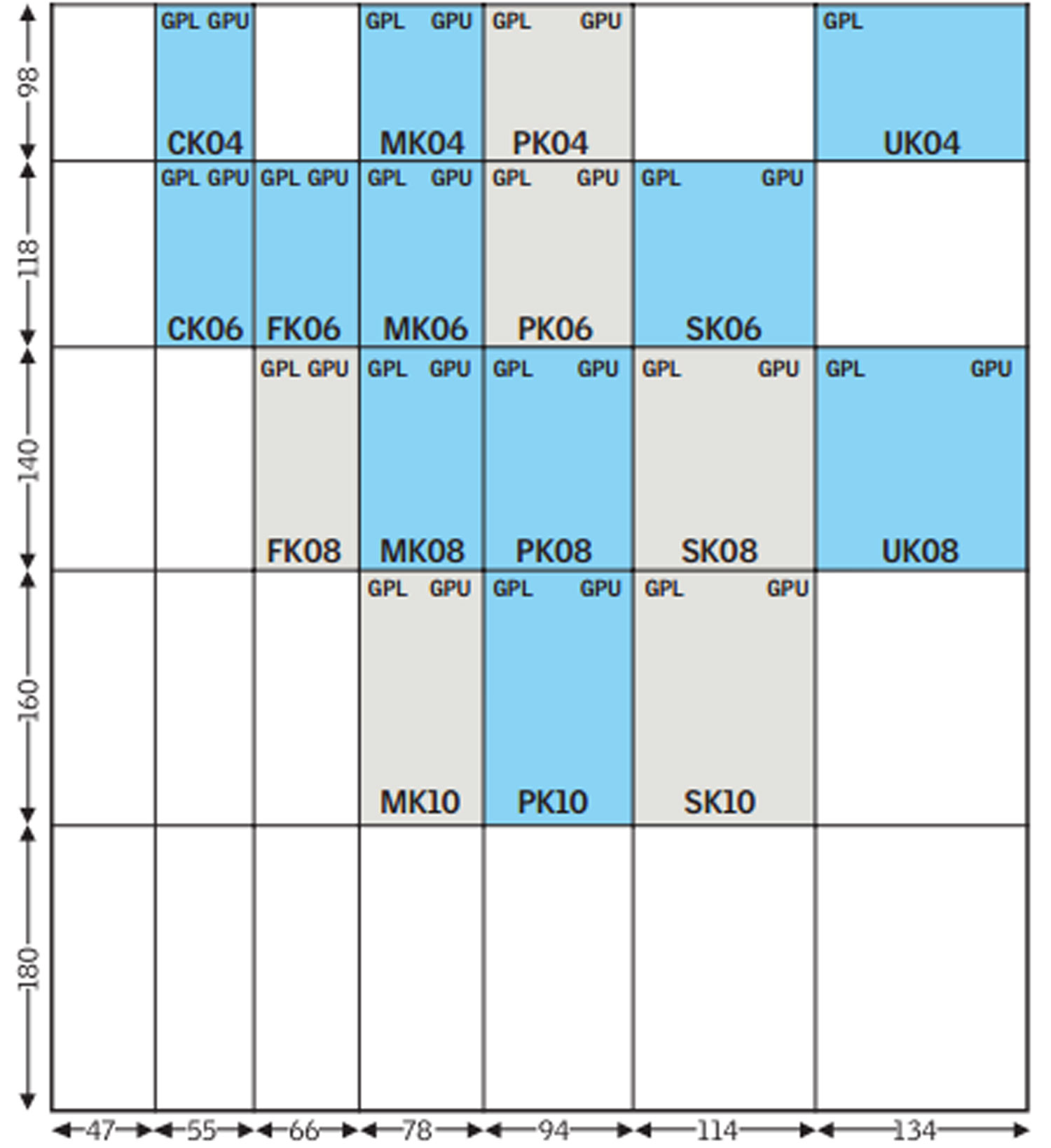 Available Top Hung Sizes